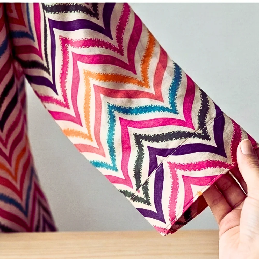 - ট্রেন্ডি মাল্টিকালার জিগজ্যাগ স্ট্রাইপ প্রিন্ট।